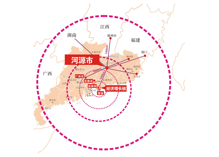 河源市地處珠三角東北門戶,京九鐵路、漳龍鐵路和105國道、205國道貫穿全境,是粵北地區(qū)新的交通樞紐城市,位于香港深圳經(jīng)濟(jì)增長核的中間圈層地帶。